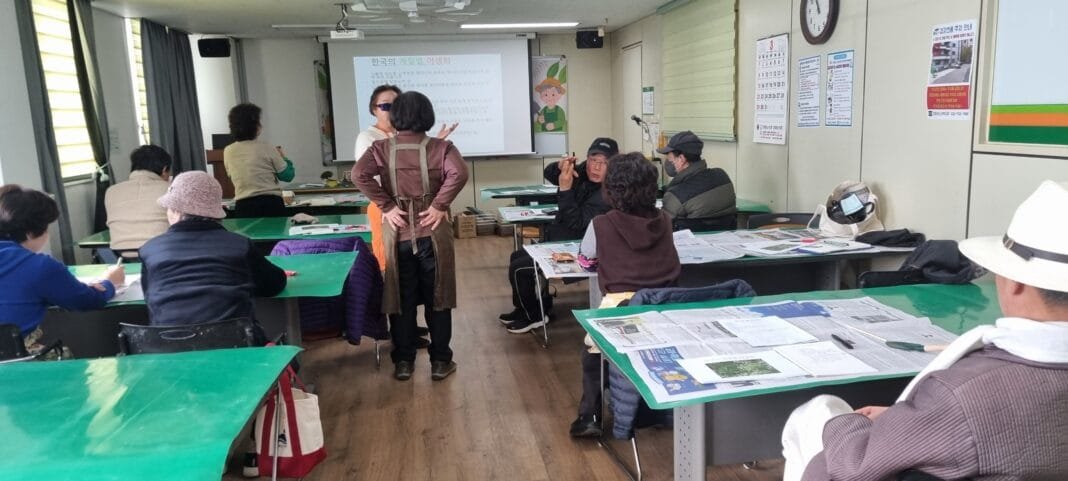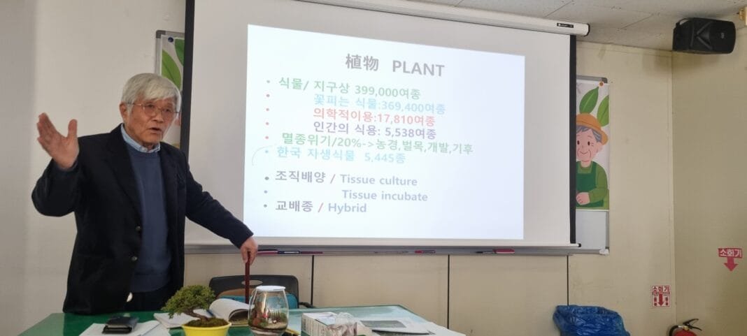 홍덕기 강사는 수업에서 기르는 식물을 죽이지 않기, 심을 때 본인이 직접 심기, 식물 관리에 아트 개념을 적용해 작품으로 만들기 등 세 가지를 핵심 원칙으로 강조했다. 아울러 한국 야생화를 계절별 특징과 함께 슬라이드로 소개하며 우리 식물의 현실을 짚었다.