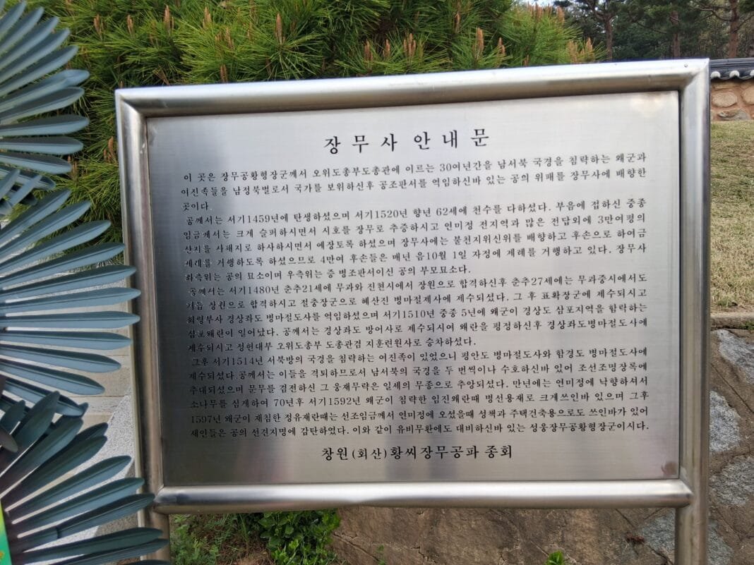 행사는 전통 제례 절차에 따라 진행됐으며, 참석자들은 국가 안보를 위해 헌신한 장무공의 생애와 공적을 되새겼다. 황형 장군은 임진왜란보다 82년 앞서 영남 지역에서 발생한 삼별초의 난을 평정해 국가 안정을 이끌었으며, 함경도 절도사 재임 시절에는 여진족의 침입을 막아내는 등 국방 강화에 큰 공을 세웠다. 이후 공조판서를 지내며 문무를 겸비한 인재로 평가받았다.