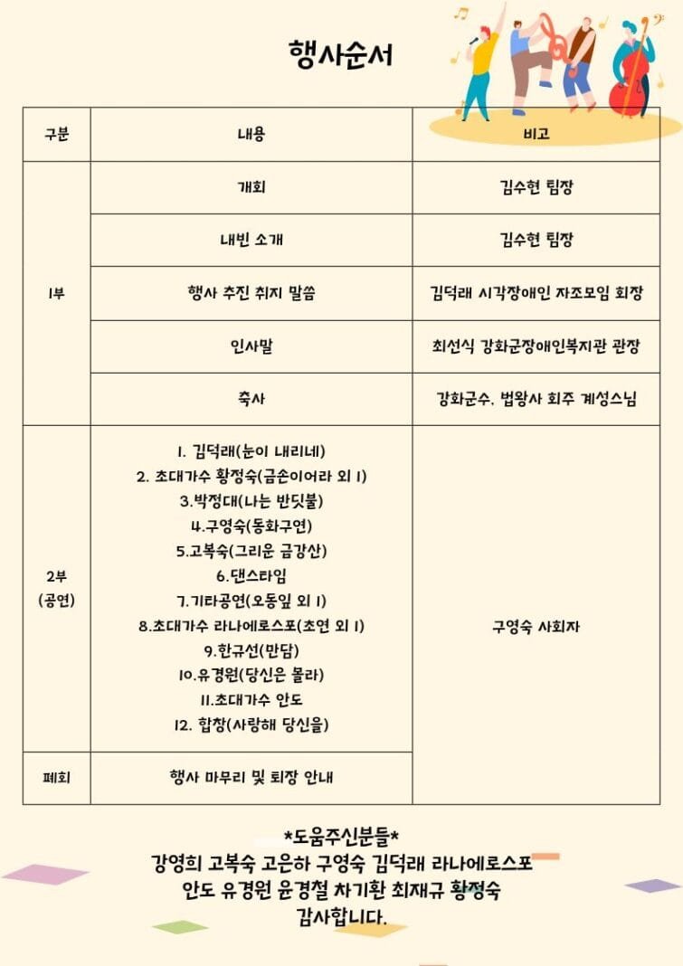 [행사순서와 공연 출연자]