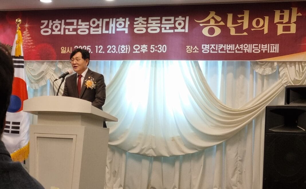 강화군농업대학 총동문회는 지난 12월 23일 명진컨벤션웨딩부페 3층 대홀에서 ‘2025년 강화군 농업대학 총동문회 송년회’를 성대하게 개최했다.