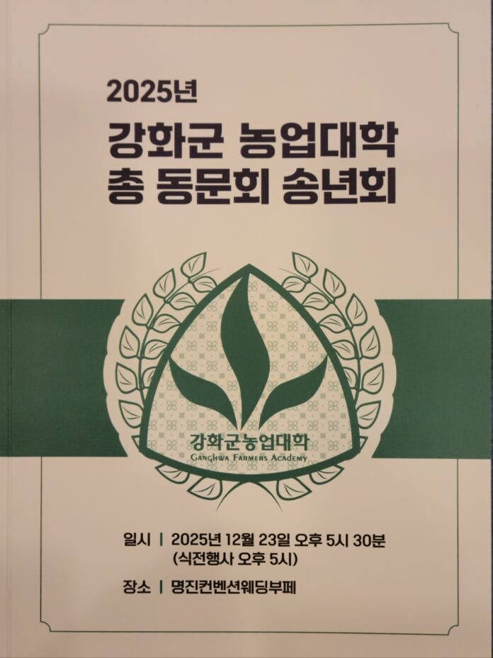 강화군농업대학 총동문회는 지난 12월 23일 명진컨벤션웨딩부페 3층 대홀에서 ‘2025년 강화군 농업대학 총동문회 송년회’를 성대하게 개최했다.